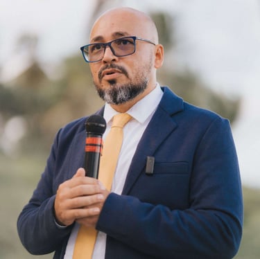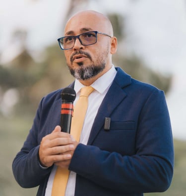 Júnior Crispim é o coração do projeto, unindo fé e finanças para ensinar mordomia cristã com paixão e clareza.